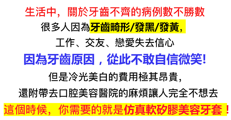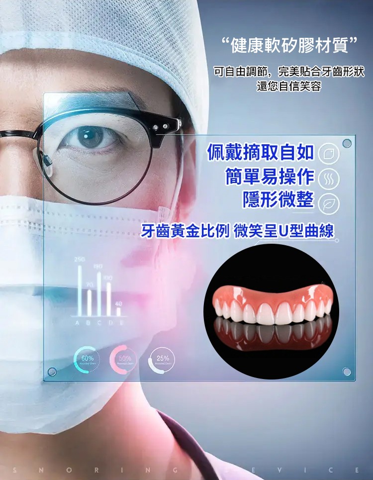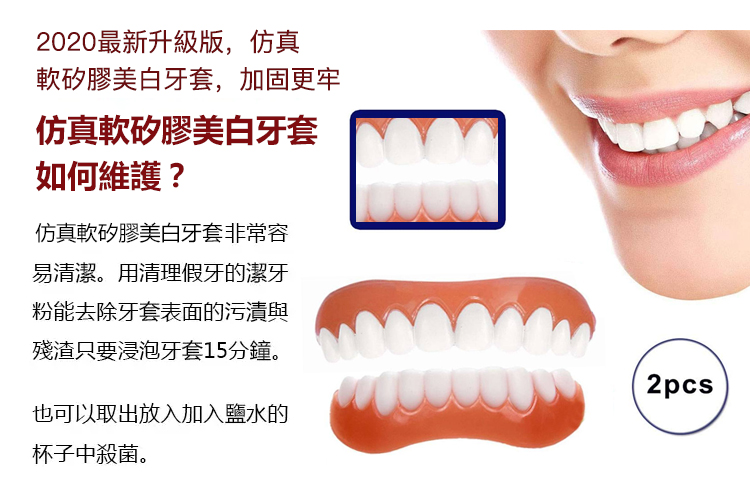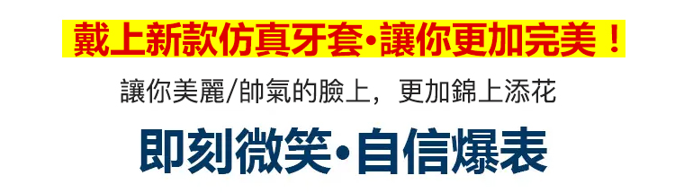 可脫卸美白牙齒套,仿真軟矽膠可調節設計,360度無死角,完美貼合嘴型,想笑就笑,告別不自信!限時買一贈一